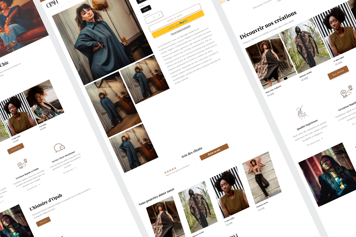 Pour le projet OPAH, j'ai réalisé un site e-commerce complet, accompagné d'une formation pour la créatrice Hawa. En tant que passionnée de mode, Hawa a quitté le monde du commerce pour suivre sa vocation et créer sa propre marque, Opah. Elle propose des vêtements uniques et élégants, inspirés de ses origines subsahariennes, confectionnés avec soin et des tissus de qualité. Le site e-commerce permet aux clients de découvrir et d'acheter ces pièces raffinées, tout en bénéficiant d'une expérience utilisateur fluide et agréable, grâce à une formation sur l'utilisation et la gestion de la boutique en ligne.